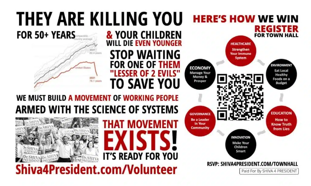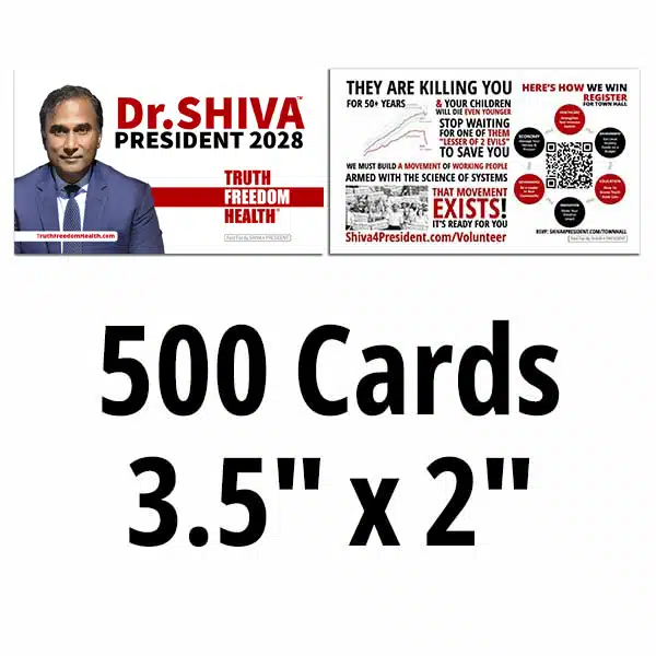 For your convenience, we offer Dr.SHIVA 2028™ Campaign Cards in packs of 500. You are also more than welcome to download the card graphics at Shiva4President.com/Downloads for local printing at home or your local print shop.